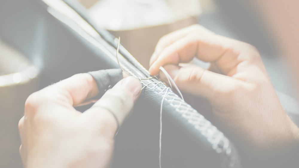 レザークラフトの手縫い作業で革をしっかり固定でき、安定した縫い目に仕上がります。